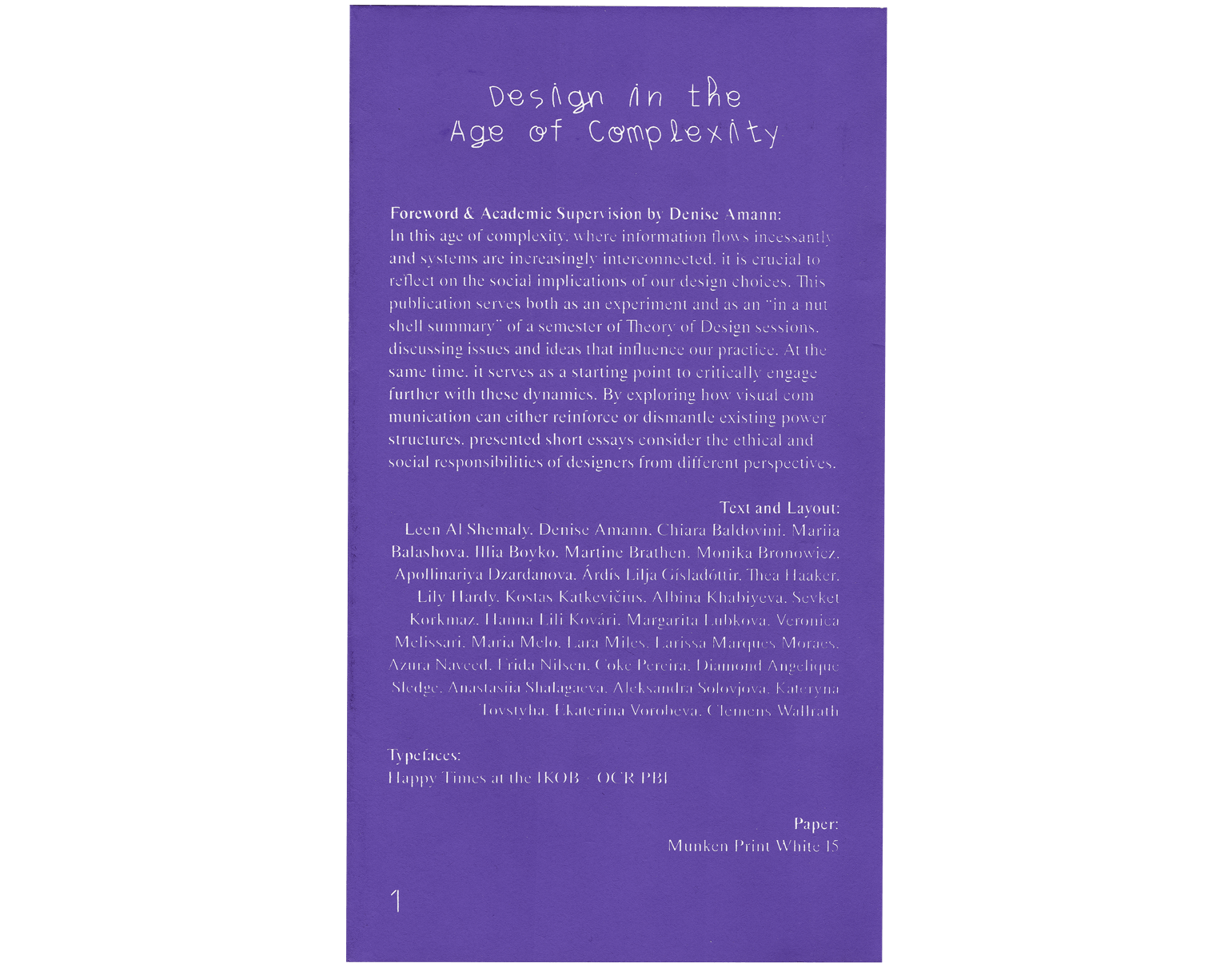 The screen printed poster/zine serves both as a critical inquiry and as an "in-a-nutshell summary" of a semester of Theory of Design sessions, discussing issues and ideas that influence our practice.