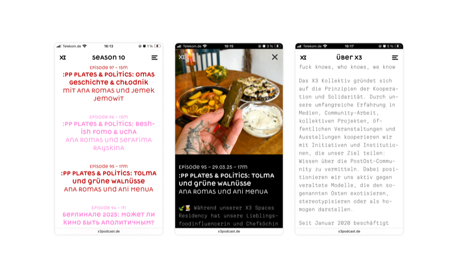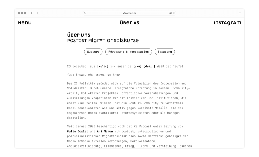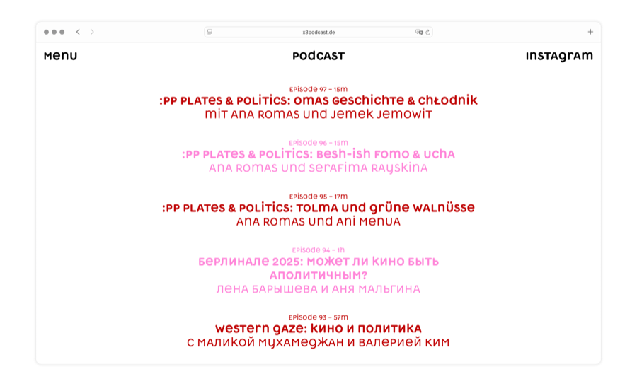 The podcast has been dealing with post-ost, Eastern European, and post-socialist migration discourse since 2016. To assist with expansion into events, festivals, and artist residencies we created an identity based on a west-facing arrow along with a Cyrillic-forward typeface by Dmytro Rastvortsev.